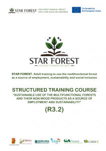 “L’USO SOSTENIBILE DELLE FORESTE MULTIFUNZIONALI E DEI LORO PRODOTTI NON LEGNOSI COME FONTE DI OCCUPAZIONE E SOSTENIBILITÀ AMBIENTALE” è un corso di formazione modulare, che segue lo schema delle unità di competenza del Curriculum STAR FOREST progettato, dando grande importanza alla raccolta di PFNM (come funghi, castagne e altri frutti selvatici, resina, pinoli, piante medicinali e miele, tra gli altri). È il contenuto principale del portale Star Forest e sarà disponibile permanentemente.